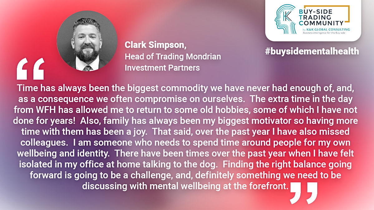 ✔ Quotes were collected from the Buy-side Trading Community to create awareness of how important mental health is in the capital markets in particular during the pandemic.